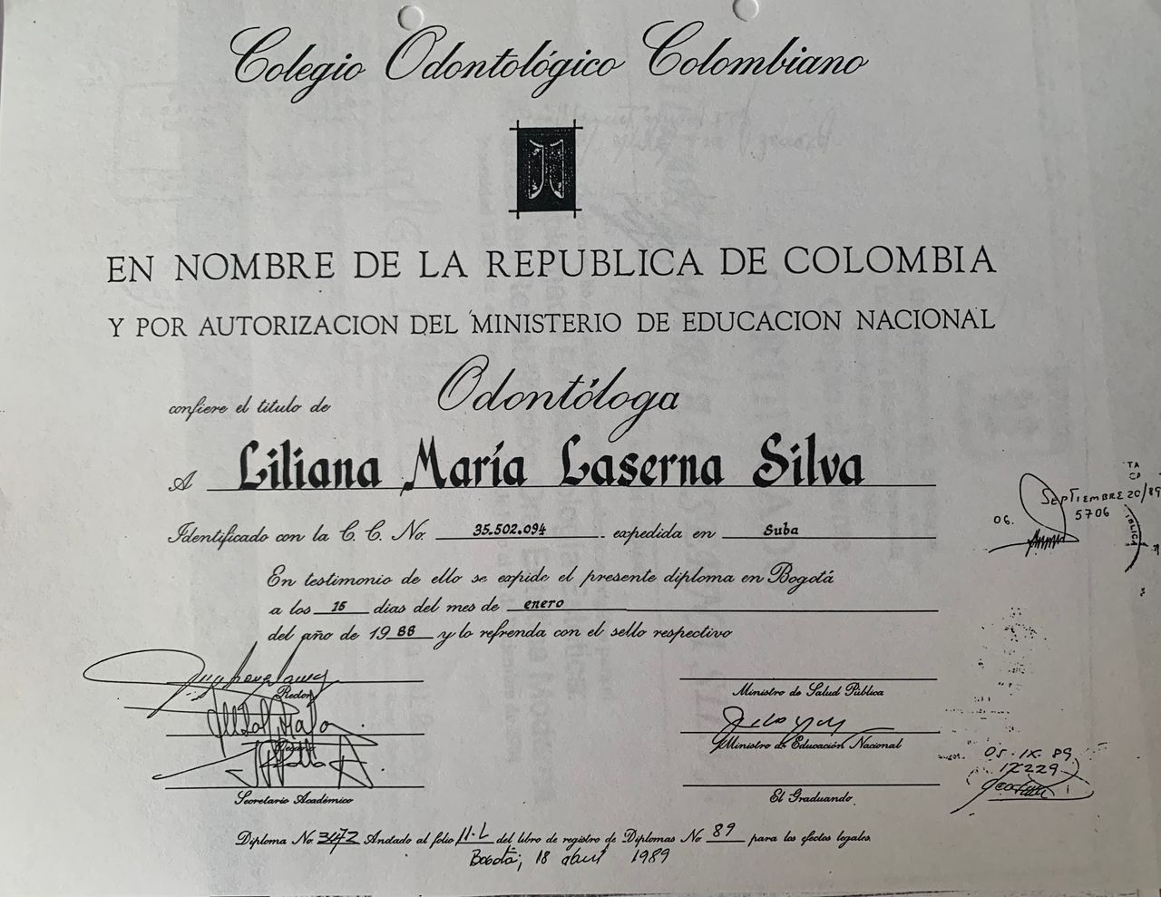 - Mas de 30 años de experiencia, trabaje como Odontóloga adscrita el BancoCentral Hipotecario por 11 años, en el Servicio. Medico del Banco Popular 5 años, en la Caja de Compensación Familiar Indufamiliar, y permanentemente, en la practica privada en el Consultorio Particular. Indufamiliar,